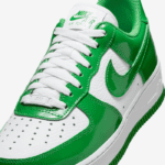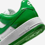 The AF 1 Kelly Green features a crisp leather upper that delivers durability and a clean finish. Shiny patent leather accents add a premium touch, enhancing the overall look with a glossy, standout effect.