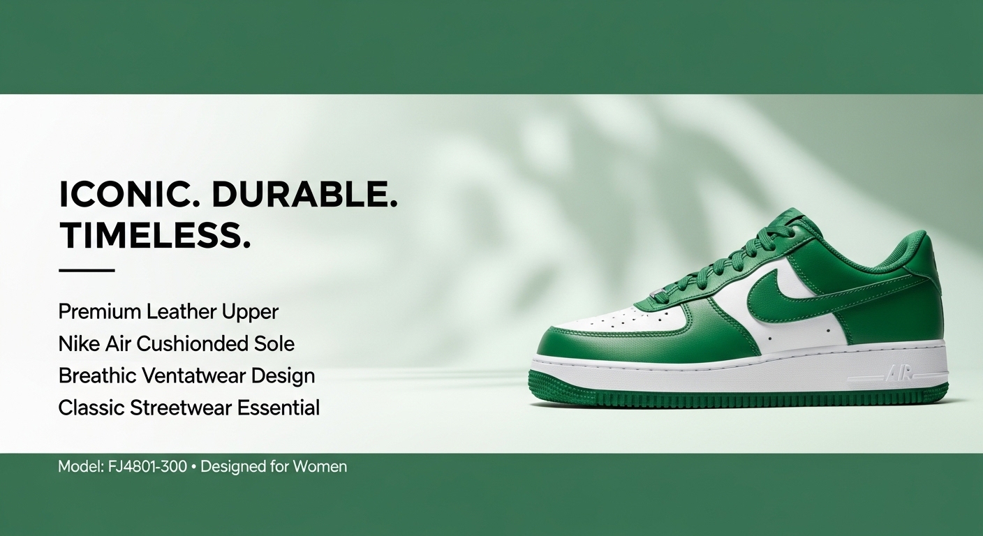 Nike, a trailblazer since its inception, has always strived to merge innovation with style. This timeless vision shines through in their Women’s Air Force 1 ’07 (FJ4801-300). Drenched in Kelly Green/Kelly Green-White, these classic & retro sneakers are perfect for Spring 2025. Embrace the iconic style today, only at SVD.