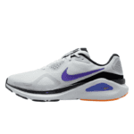 The Nike Structure 26 continues its reputation as a reliable stability trainer built for daily runs, long walks, and all-day support. This “Pure Platinum/Wolf Grey/Total Orange/Persian Violet” edition refreshes the silhouette with a clean grey base accented by sharp violet detailing for a modern athletic finish.